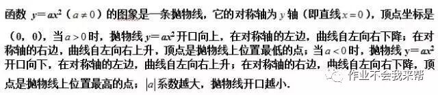 2.拋物線y=ax2+bx+c(a≠0)的圖象:當a>0時,開口向上,當a<0時開口向下,對稱軸是直線x=-b/2a,頂點坐標是(-b/2a,[4ac-b2]/4a).