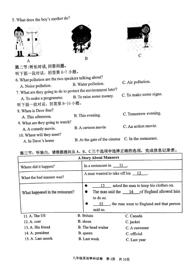 2020浙江溫州12中九下第一次月考英語試卷(圖片版)(2)